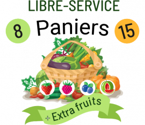# Le LIBRE-SERVICE : Passez au kiosque pendant les heures d’ouverture, choisissez vos produits et composez votre panier ! Ce panier plus petit est composé selon vos envies.